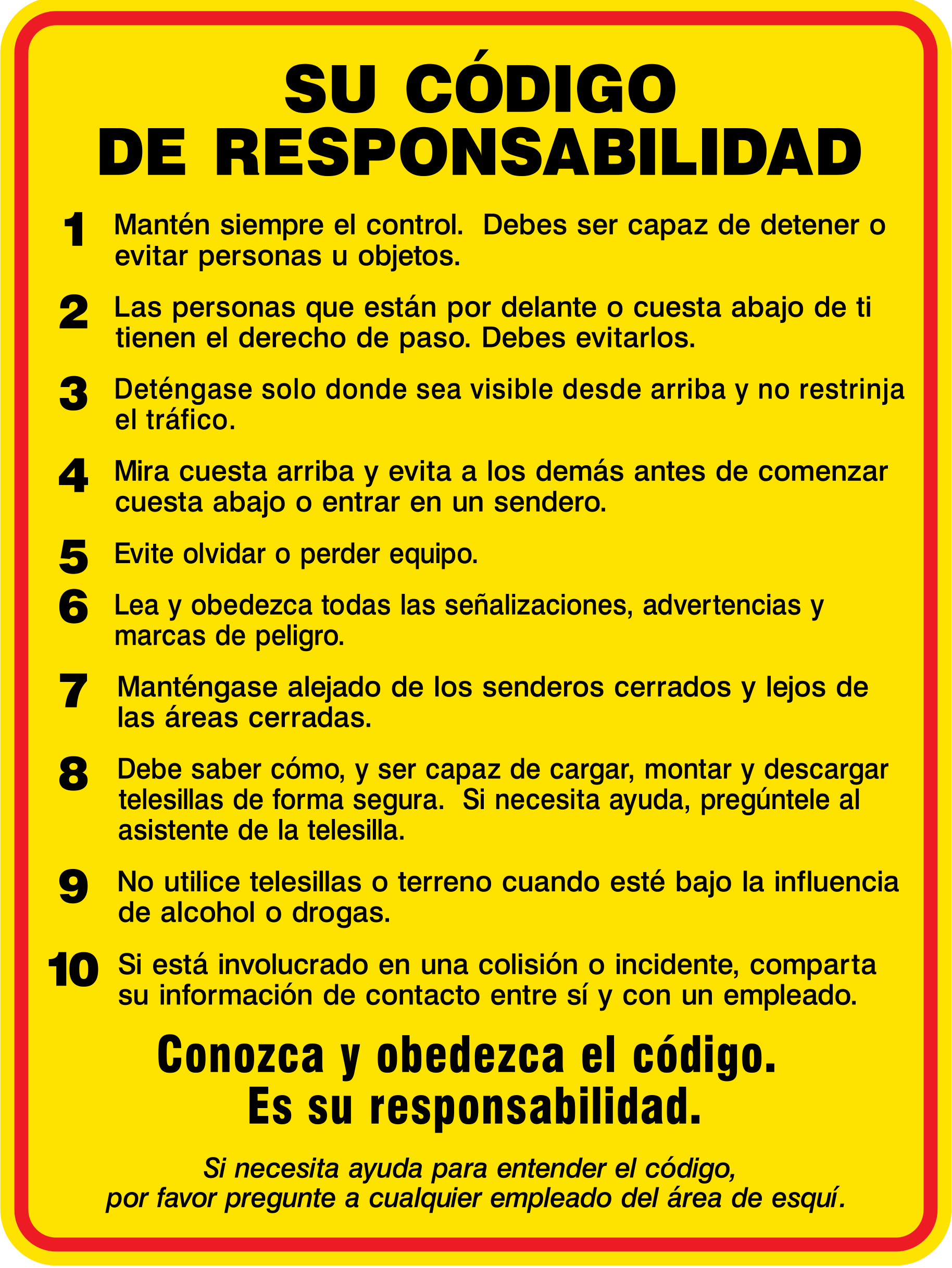 Keep the following responsibility code in mind to keep safe at our resorts: